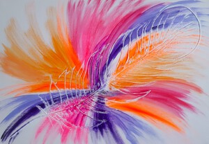 2020De fun and flowy collectie is ontstaan uit verf die over was van een ander schilderij. Ik vind het zonde om verf weg te gooien, dus wat doe je dan? Je pakt een nieuw doek ;-) Het leuke van deze collectie is dat er geen boven of onderkant is, je kan hem ophangen zoals jij dat wil!